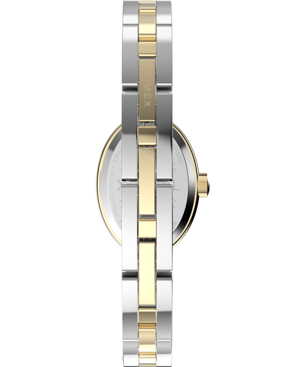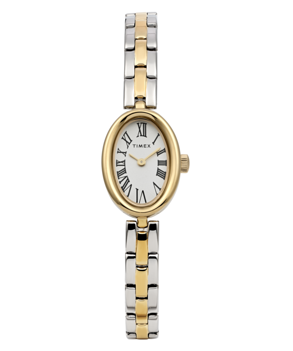 Our newly redesigned Cavatina remains faithful to its petite roots with a polished 19mm case in a classic oval shape that whispers a timeless elegance on the wrist. The delicately domed mineral crystal harmonizes with the smooth curvature of the case, while sophisticated Roman numerals grace the clean white or aquamarine dial. Completing its feminine profile is either a polished stianless-steel bracelet with self-adjustable links or a more contemporary gold-tone bangle.