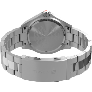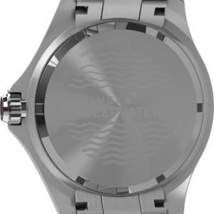 Merging resilience and elegance with crucial functions for underwater pursuits, our Deepwater Meridian 200 is expertly built to venture deeper with a substantial 44mm stainless-steel case. Fortified with a screw-down crown and screw-on case back that effectively keep water out, its robust construction is expertly engineered to withstand water pressures of up to 20 atmospheres and provides 200m of water resistance. This watch is powered by a reliable quartz movement, and we’ve equipped it with a sapphire crystal with anti-reflective coating, a sturdy crown protector, a magnified date window, a unidirectional ratcheting top ring, and Super-Luminova® hands and hour markers providing the luminosity you rely on as you venture below. A unique wave pattern brings dimension to the blue or black dial, while the brushed and polished stainless-steel bracelet is equipped with an extender that allows for a looser fit over your wet suit.