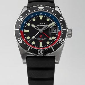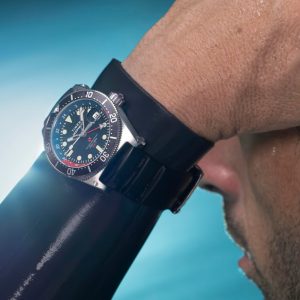 Merging resilience and elegance with crucial functions for underwater pursuits, our Deepwater Reef 200 GMT is expertly engineered to venture deeper. Built with a sturdy 41mm stainless-steel case, fortified with a screw-down crown and screw-on case back, it effectively keeps water out and offers 200m of water resistance. It’s powered by a reliable quartz GMT movement, and we’ve equipped it with a scratch-resistant sapphire crystal with anti-reflective coating, a date window with a magnifier for enhanced visibility, a unidirectional bezel, and Super-Luminova® hands and hour markers providing the luminosity you rely on as you explore beyond the edge. Enjoy durability and style both in and out of the water with an embossed synthetic rubber strap with slip-thru sport closure.Â