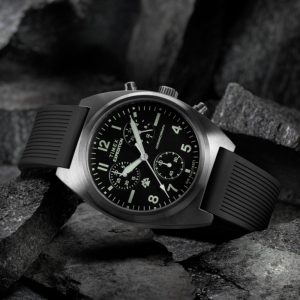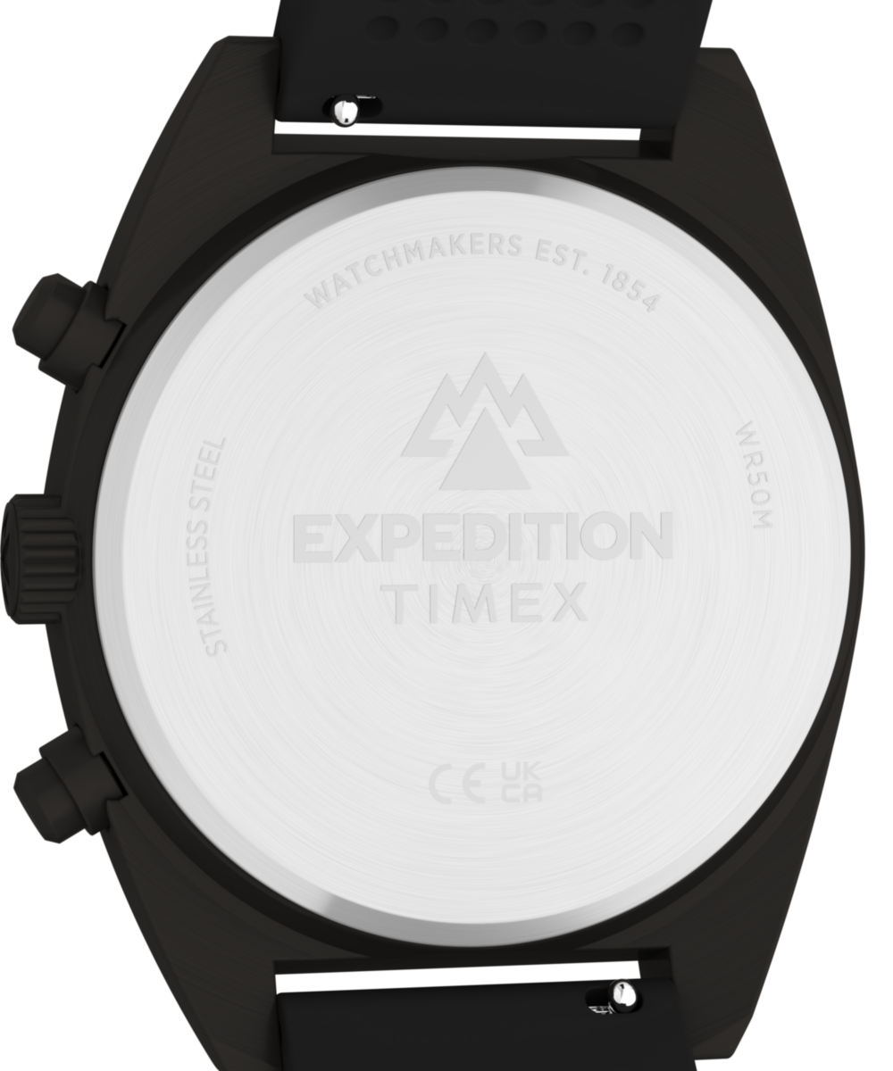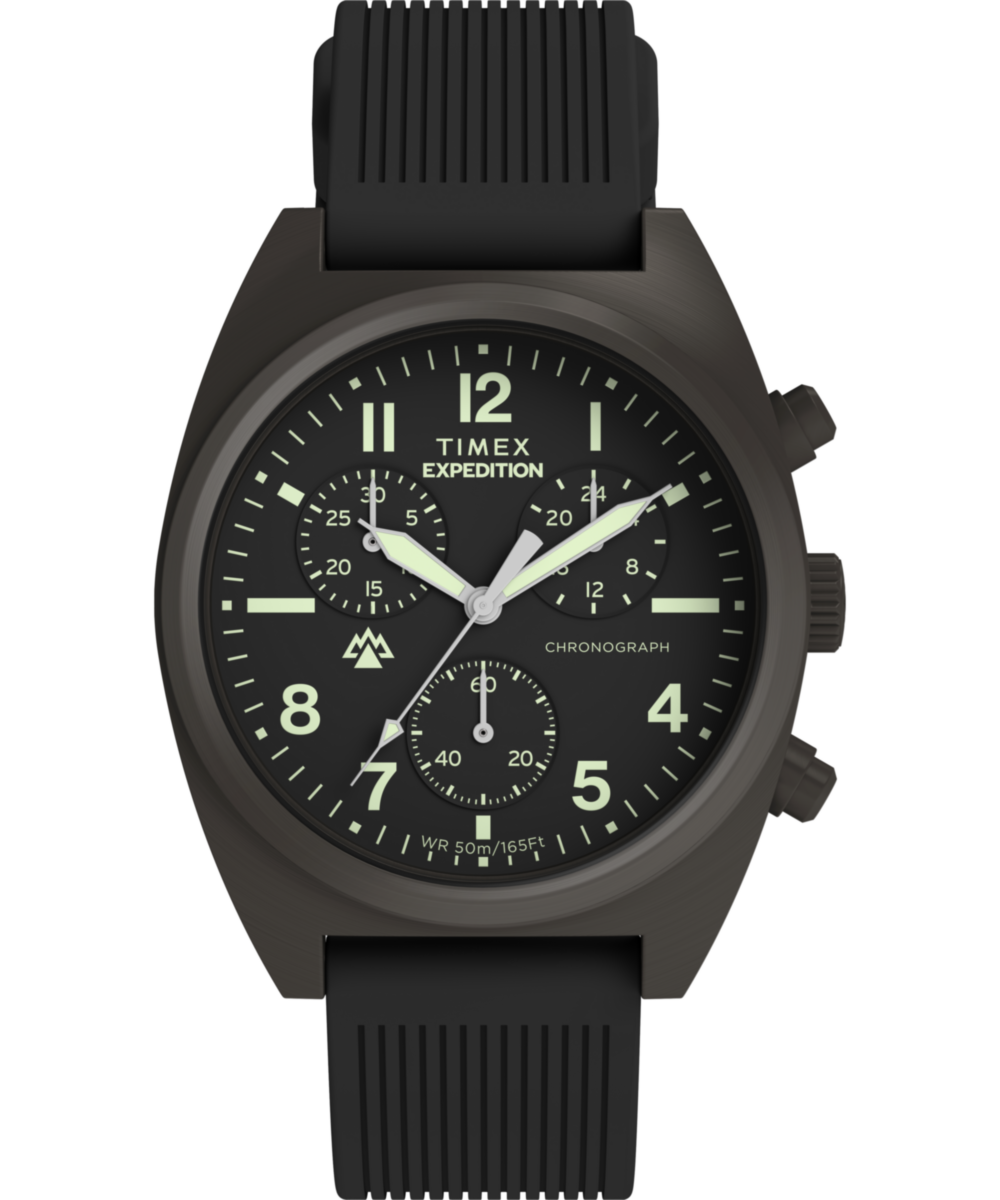 This update to our Expedition Capstone brings the advanced functionality of a chronograph for tracking elapsed time. Circular brushing and a sleek tonneau silhouette elevate the rugged 41mm stainless-steel case, which frames a black dial protected by a flat mineral glass crystal. Luminant hands and hour markers make it easier to tell time when the sun goes down, and we’ve paired this handsome outdoor companion with a silicone strap that’s soft and flexible on the wrist and equipped with quick-release spring bars for easy strap changes on the move. And with 50m water resistance rating, this chronograph is ready to withstand the elements wherever adventure takes you.