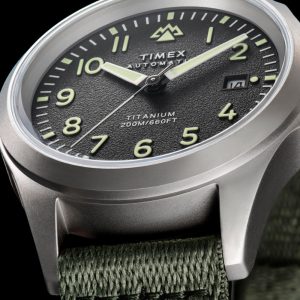 The Expedition Titanium Automatic is ready to go the distance. Constructed with the most durable materials, the shock-resistant 41mm case is rendered in true Titanium, complemented by a scratch-resistant sapphire crystal and a screw-down crown and case back that provide 200m of water resistance. The grey dial features a date window and Super LumiNova® in-fill for night visibility, making it easy to read in any situation. But that’s not all – this watch also features a Japanese automatic movement and a sustainable #TIDEâ„¢ olive fabric strap made from recycled ocean-bound plastic, complete with a titanium buckle. It’s a timepiece that lives up to the Timex legacy of fully equipping you for your adventures ahead while embodying the kind of tradition you can wear every day.