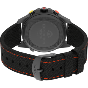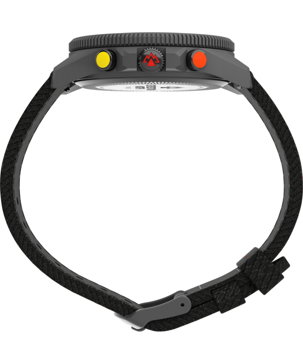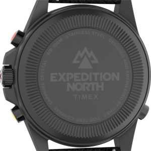 Crafted from 316L stainless steel, this timepiece is literally built for the long haul, from the curves of its rugged case to the tactile experience of its pushers. The watch also features an anti-reflective sapphire crystal, luminescent hands and hour markers, a comfortable fabric strap made from 100% recycled plastic and a water resistance rating of 100 meters. And thanks to our proprietary Tide-Temp-Compass movement’s bidirectional center hand that reflects local tide and temperature conditions and points you in the right direction, our Expedition Tide-Temp-Compass is a must-have piece of gear to take you from street to summit and back again.