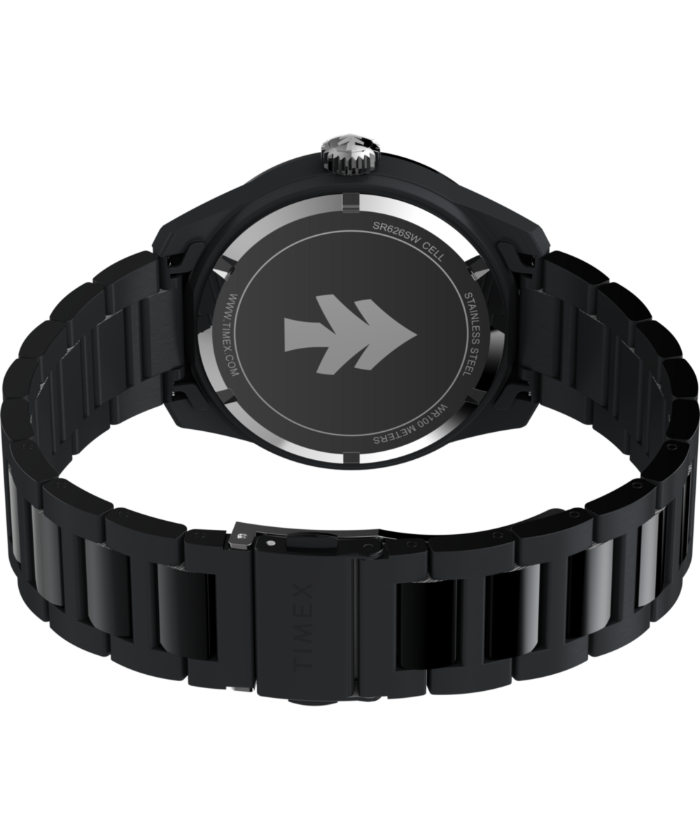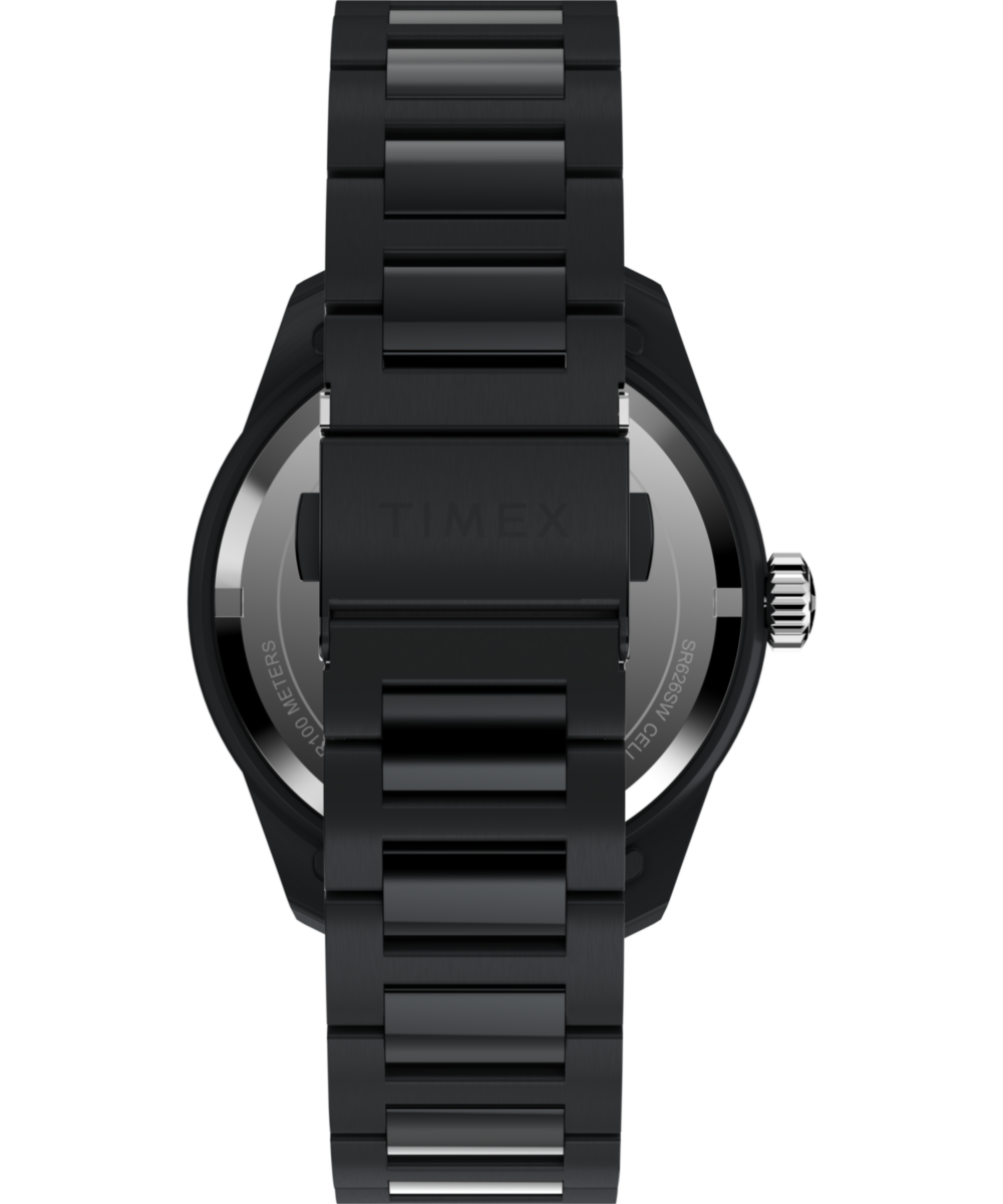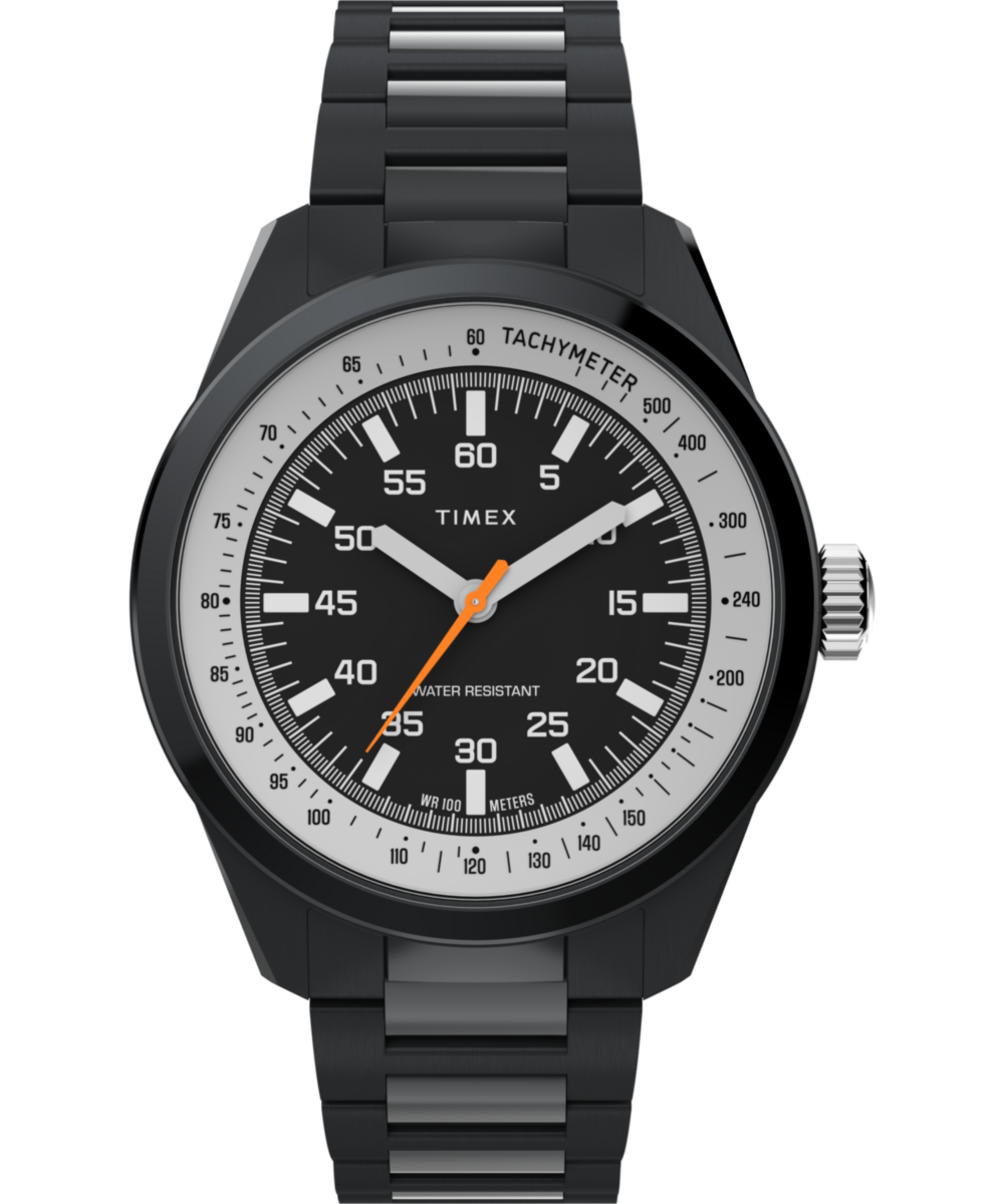 The Huckberry x Timex 1979 Black Max brings back the bold spirit of late-’70s sport design in a modern form. Inspired by the all-black profile of the 1979 original, this exclusive collaboration updates the classic with a more assertive 41mm case and reliable quartz movement. Its defining features are a metallic silver ornamental tachymeter index framing the black dial and striking orange second hand. Furthering its black profile is a fully-brushed black stainless-steel case and matching bracelet. With 100m of water resistance, a flat mineral glass crystal, and compatibility with most 20mm straps, it’s a vintage-style standout for the modern wearer.