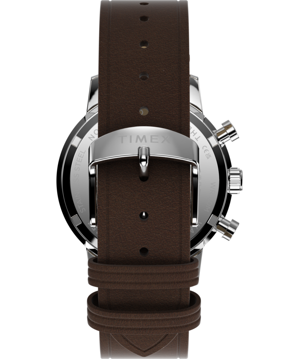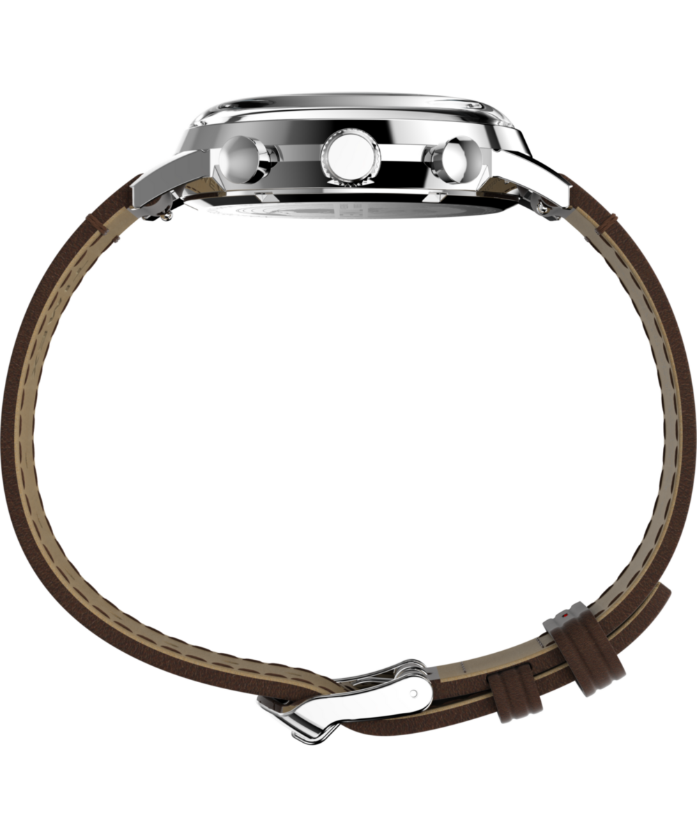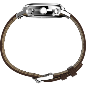 A chronograph movement provides the added functionality of a stopwatch. By using the two pushers, you can start, stop, and reset this function.