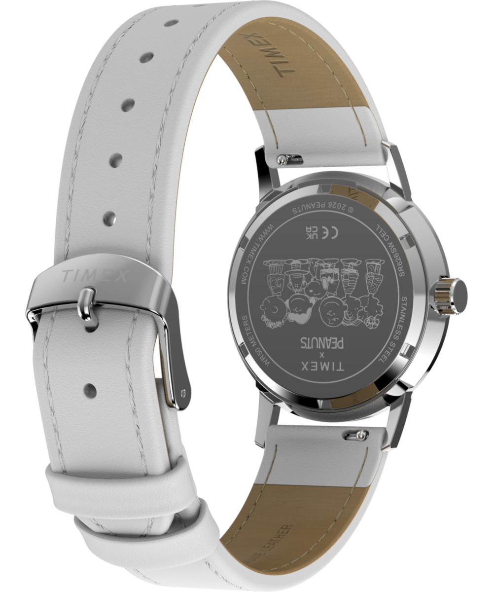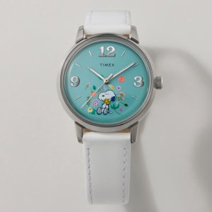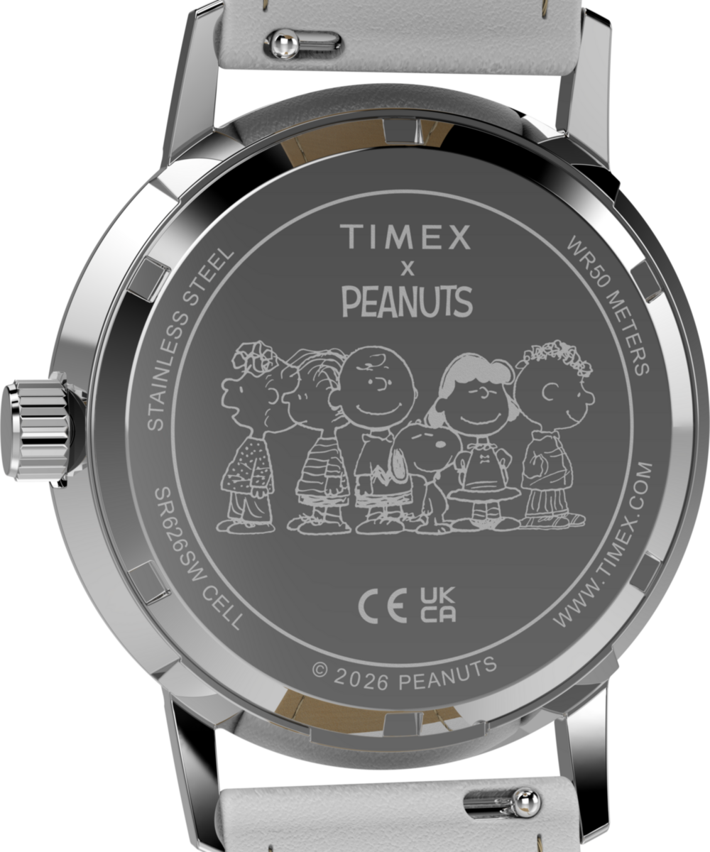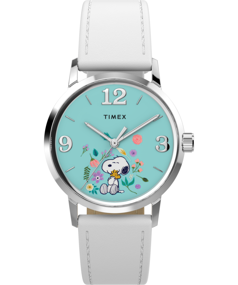 Snoopy and Woodstock stop and smell the flowers on the mint dial of this special update to our Marlin. Complete with a stainless-steel case, luminant hands, metallic indices, and a smooth grain white leather strap responsibly sourced from the Leather Working Group (LWG) and equipped with quick-release spring bars, it brings an effortlessly beautiful touch to your look.