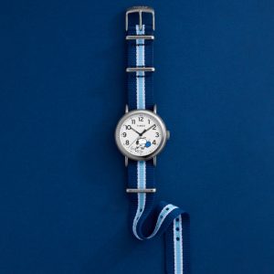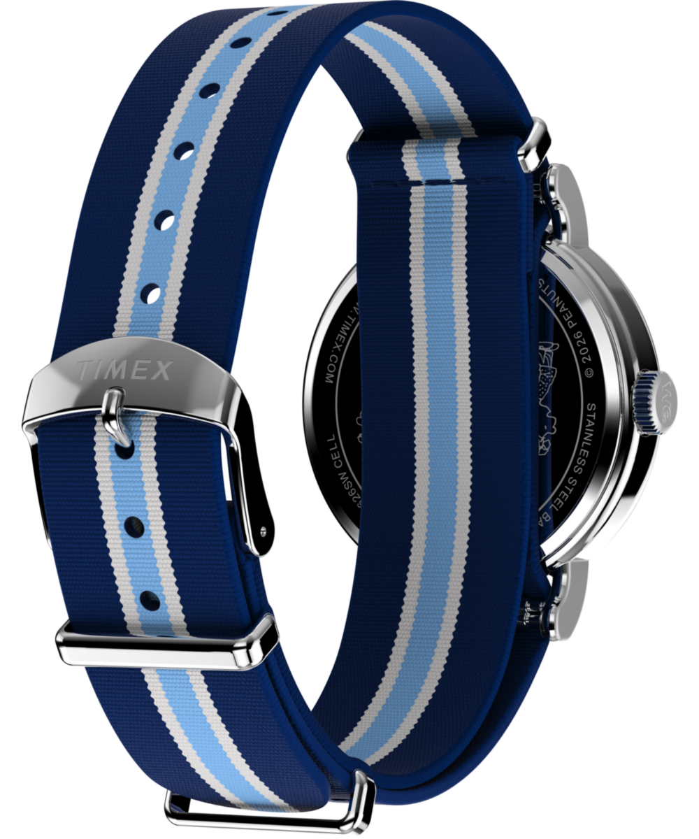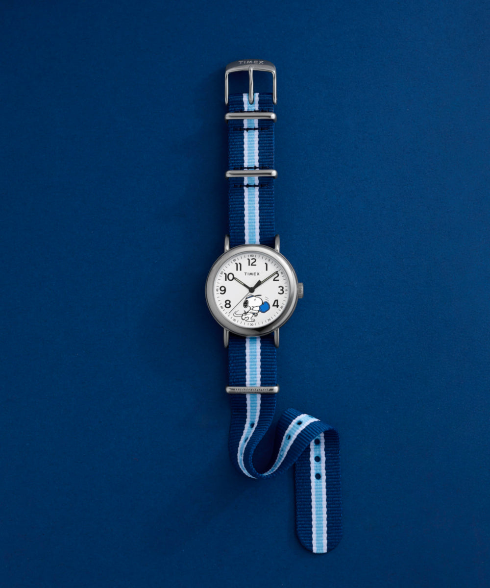 Snoopy masters the game of pickleball on the dial of our Timex Weekender. Featuring a polished silver-tone case, a clean white dial, luminant hands, and an eco-friendly slip-thru fabric strap, this adorable timepiece makes for a classic Peanuts watch youāre sure to love on and off the court.
