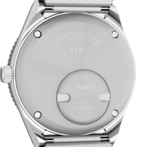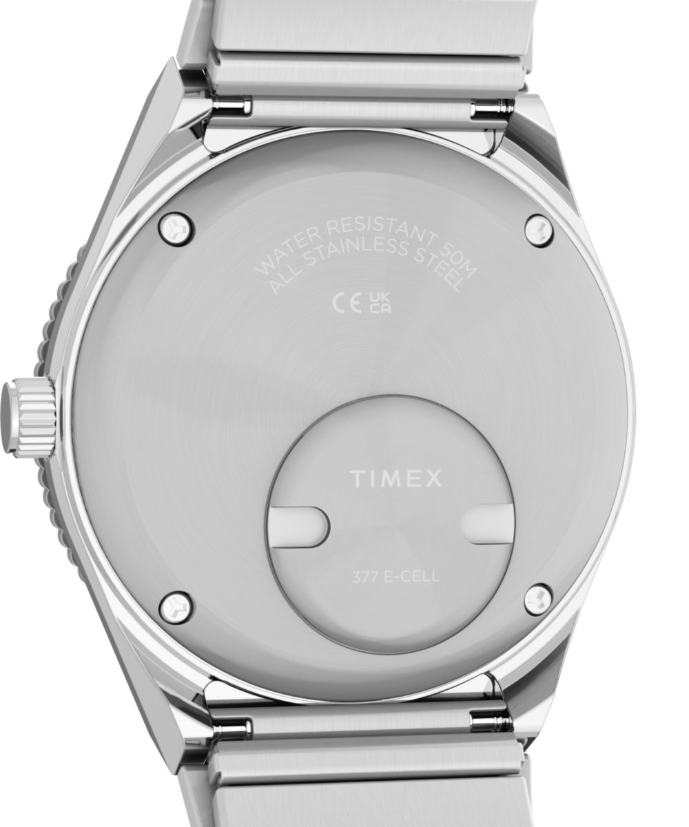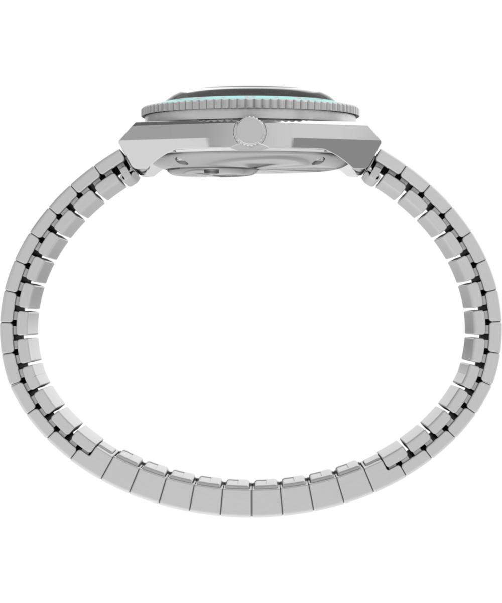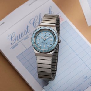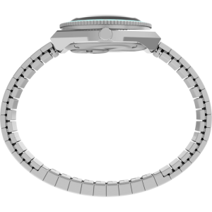 This petite take on our ‘70s Q Timex sports a tinier 30mm case and Perfect Fit expansion band in stainless steel. Perfectly matching the ice blue dial is a stationary top ring, and on the dial, you’ll find luminant markers and hands that make it easier to read the time when the lights are low.