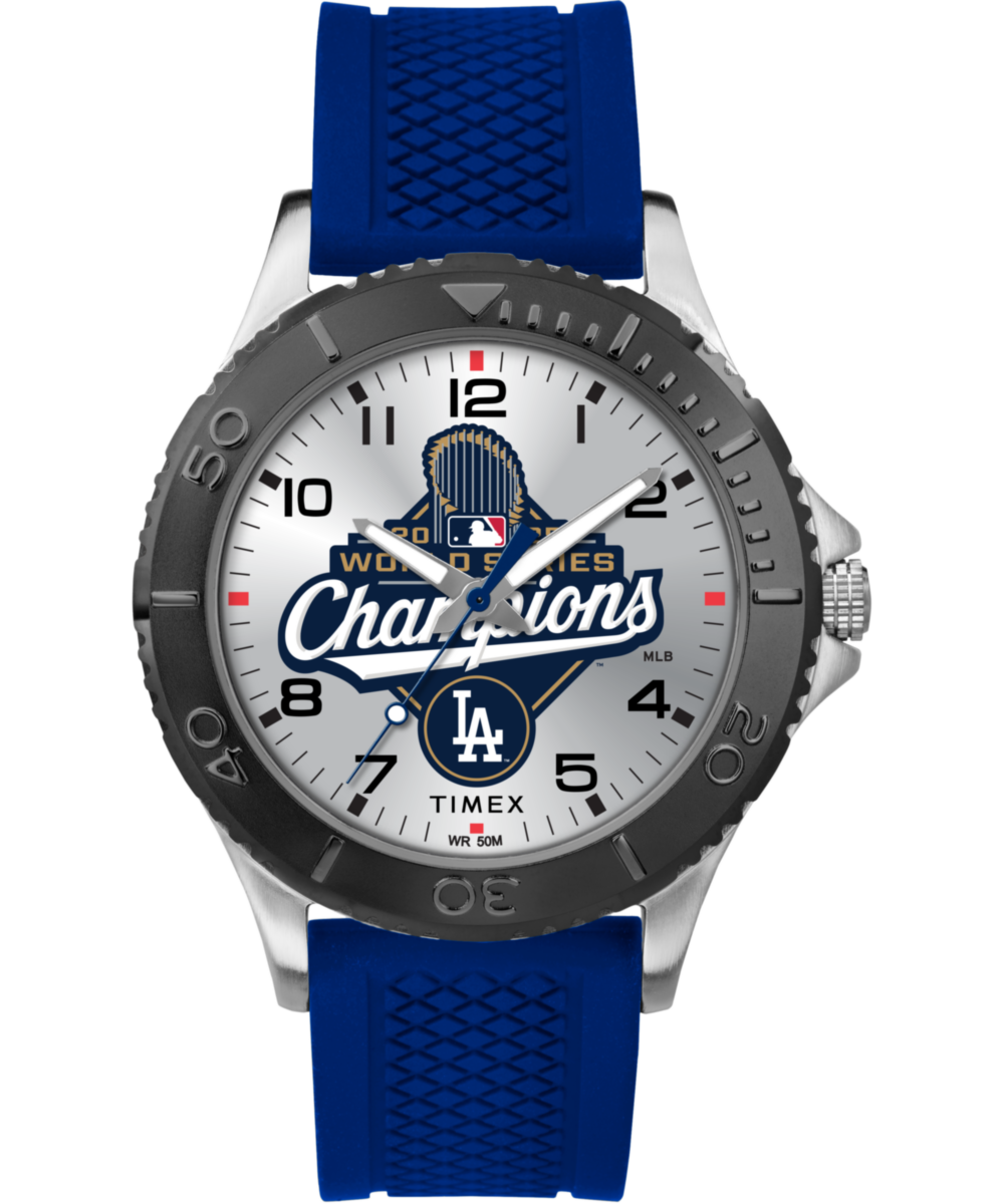 Celebrate the big win by wearing a watch that honors your Los Angeles Dodgers as the 2025 World Series Champions. With a rugged 42mm brushed case and a blue silicone strap, it shows your colors and your love for the game with easy, everyday style.