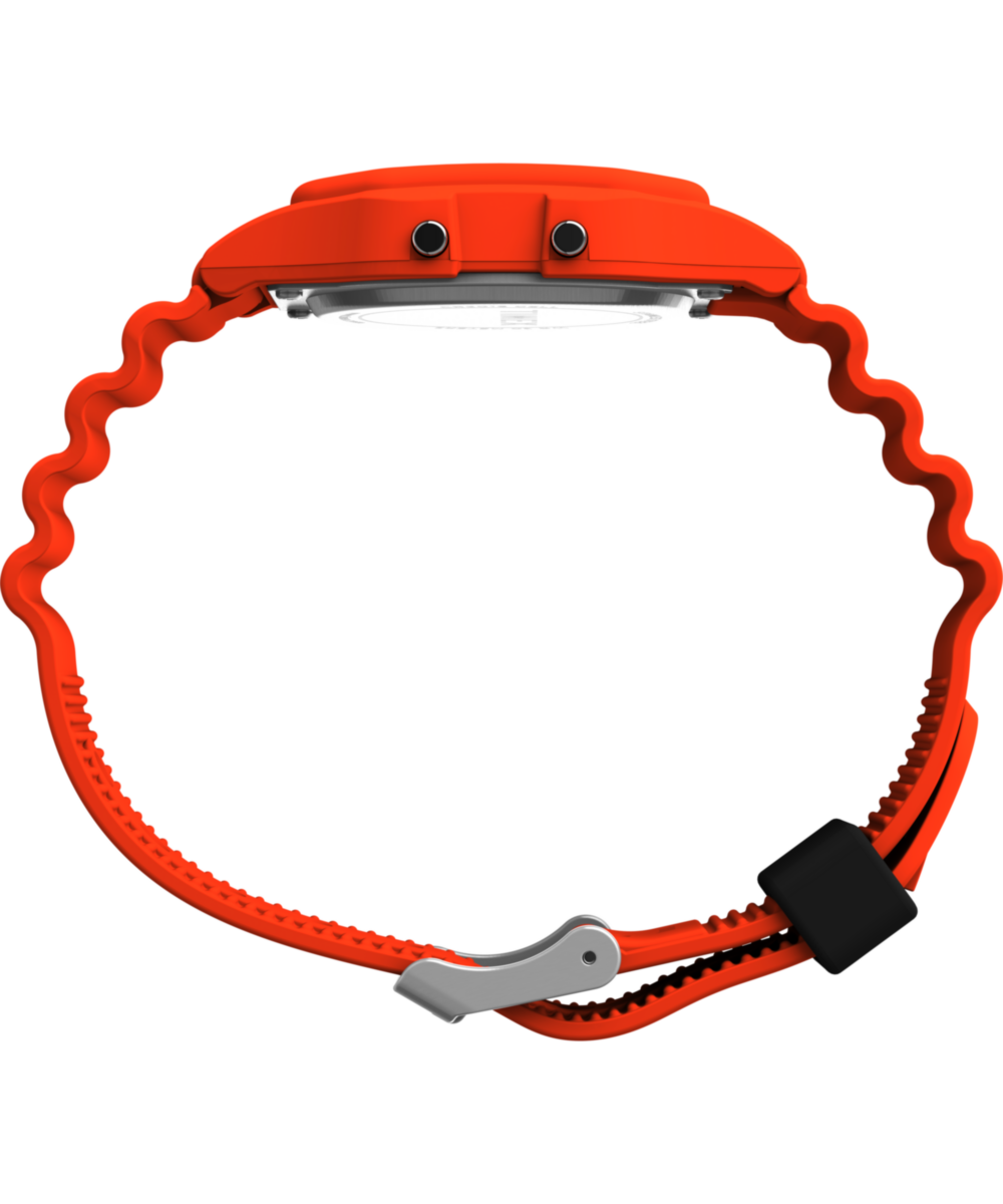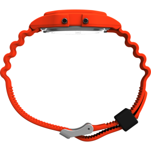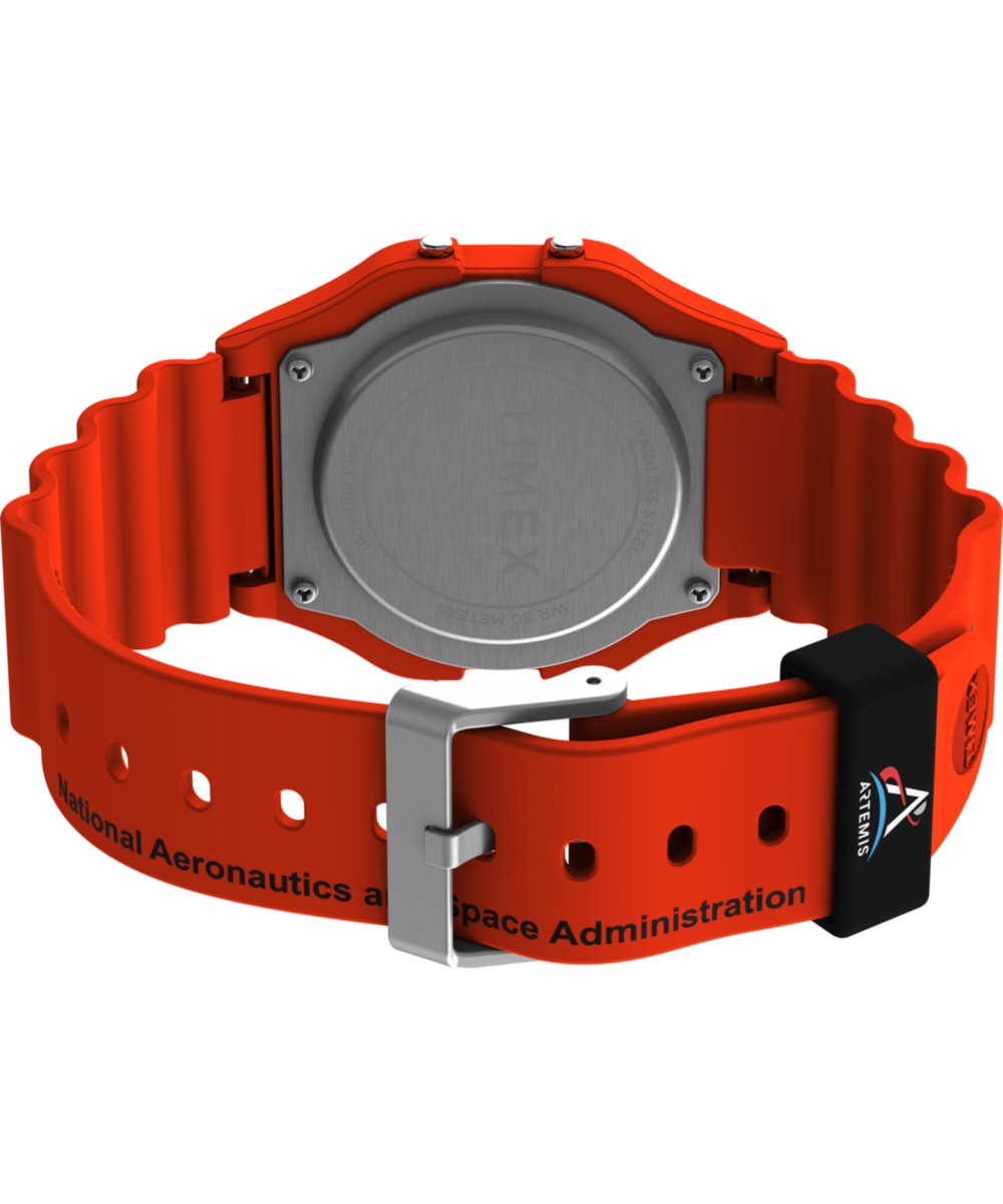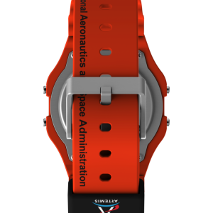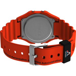 This watch celebrates humanity’s journey to the farthest reaches of space. Built with a lightweight resin case and bracelet in space-suit orange, it channels both utility and uplift. Other details include our INDIGLO® backlight for nighttime visibility, a day and date function, alarm, timer, and the iconic NASA insignia on the black lens.