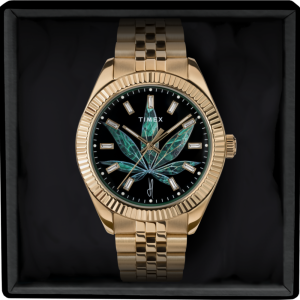 The High Life Collection brings together style, bliss, and the power of the present moment. The sweet leaf is our signature symbol of happiness. Modeled after the botanical beauty of the marijuana leaf, this design is meant to inspire freedom and bring a unique sense of empowerment to your daily essentials. Crafted in a generous 41mm size, this watch is certain to leave a lasting impression wherever you go.