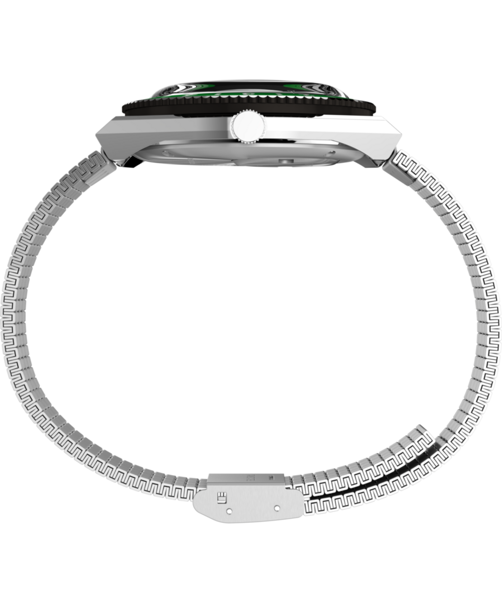 As a play on the nickname given to the color combo on the dial and bezel of our ‘70s Q Timex, seconde/seconde/ has injected a dose of fun into one of our most iconic watches. At first glance, it’s your typical Q—complete with stainless-steel case and bracelet, rotating bezel, functional battery hatch, luminous dial markings, and domed acrylic crystal— but take a closer look, and you’ll notice a customized second hand that playfully nods to the black dial and green bezel. We could spell it all out for you, but we’ll let you connect the dots. Flip the watch over, and you’ll find that the case back is engraved with a unique edition number.