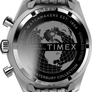 We’ve blended our favorite elements of the Waterbury case design to welcome a new quartz member into the family. Like all Waterbury’s, this timepiece displays our attention to craftsmanship and detail with finely finished surfaces and careful applications of watchmaking ingenuity. In a nod to our original collection, The Waterbury Watch Company logo is featured on the dial and second hand, which bears the stylized W, while the chronograph, featuring a tachymeter top ring has been added to the existing case design. We’ve topped things off with a sophisticated dial, multi-colored sub-dials, and stainless-steel bracelet that deliver function just as well as form.