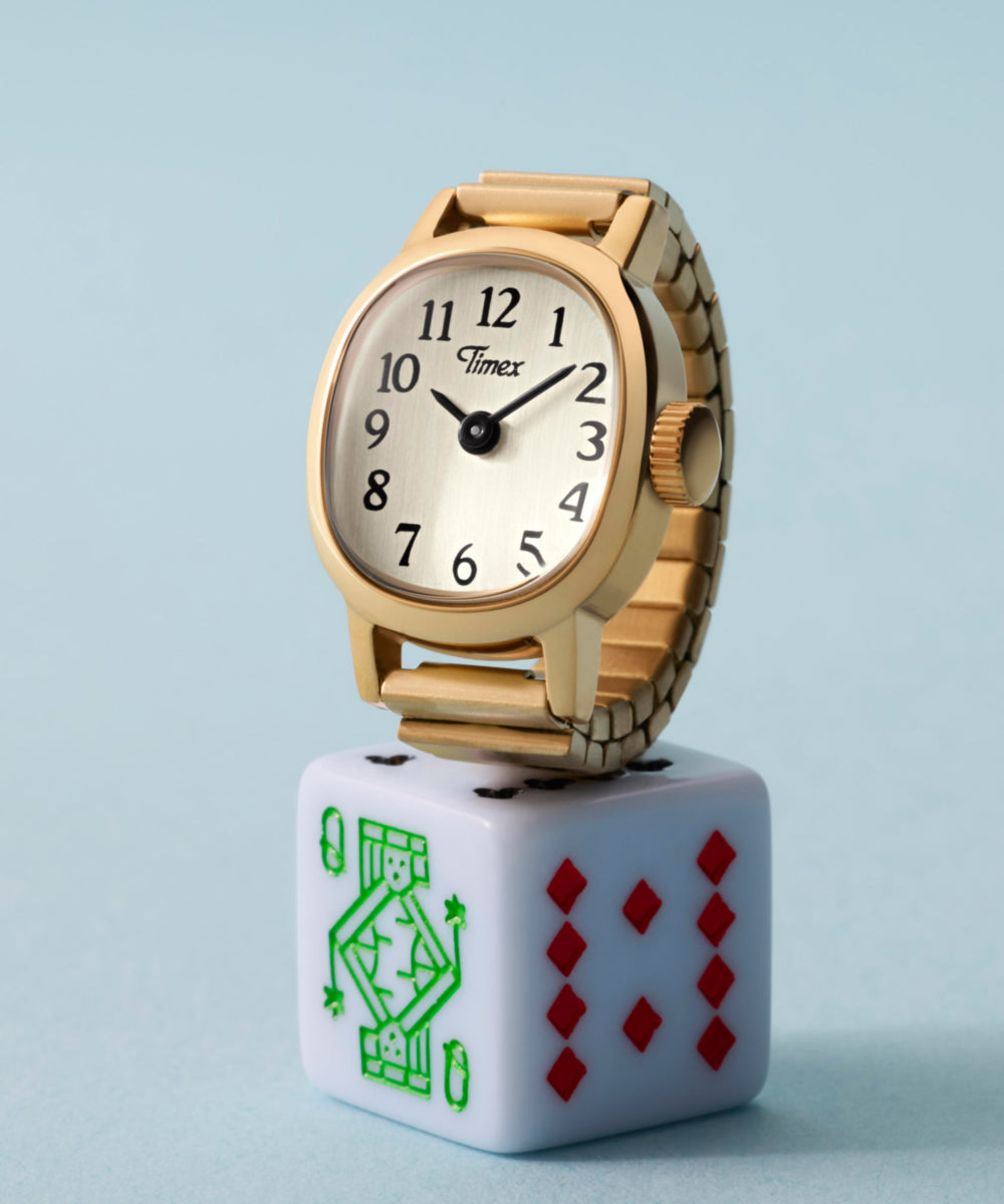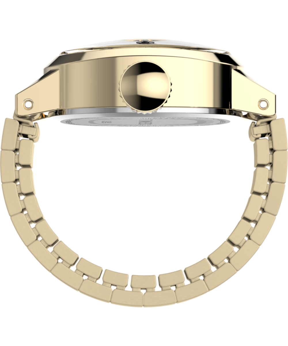 Timeless, on-trend, and of course perfectly petite, this update to our Cavatina takes the elegant silhouette you already know and love and transforms it into a ring. The stainless-steel case appears in a perfectly petite 16mm, housing a light champagne dial with clean Arabic numerals and a ’60s script-style Timex logo. Completing its tiny profile is a fully brushed recycled stainless-steel expansion band designed to easily slip onto your finger. This ring is designed to comfortably fit approximately US sizes 6–8, UK L 1/2 – P 1/2, EU 52 – 57 due to its flexible expansion band.