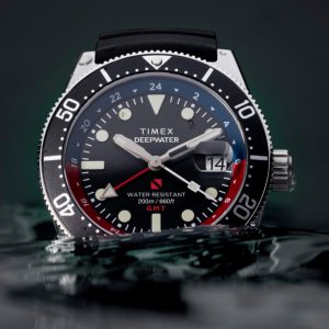 Merging resilience and elegance with crucial functions for underwater pursuits, our Deepwater Reef 200 GMT is expertly engineered to venture deeper. Built with a sturdy 41mm stainless-steel case, fortified with a screw-down crown and screw-on case back, it effectively keeps water out and offers 200m of water resistance. It’s powered by a reliable quartz GMT movement, and we’ve equipped it with a scratch-resistant sapphire crystal with anti-reflective coating, a date window with a magnifier for enhanced visibility, a unidirectional bezel, and Super-Luminova® hands and hour markers providing the luminosity you rely on as you explore beyond the edge. Enjoy durability and style both in and out of the water with an embossed synthetic rubber strap with slip-thru sport closure.Â