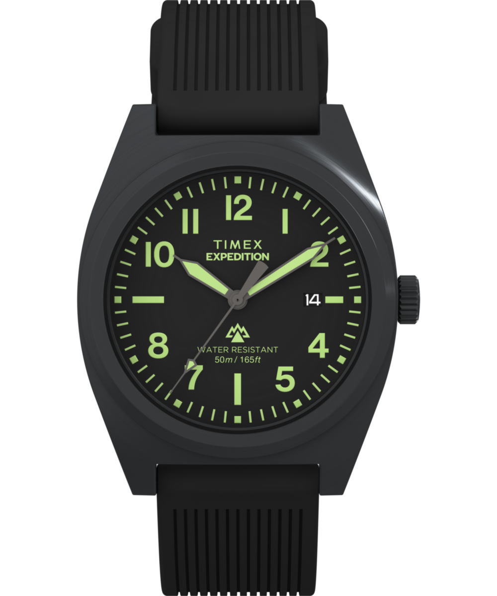 Our Expedition Capstone brings a new 39mm brushed case to our Expedition collection. The dial is protected by a flat mineral glass crystal and includes luminant hands and a date window beside 3 o’clock. We’ve paired it with a two-piece green or black silicone strap that’s soft and flexible on the wrist and equipped with quick-release spring bars for easy strap changes on the go.