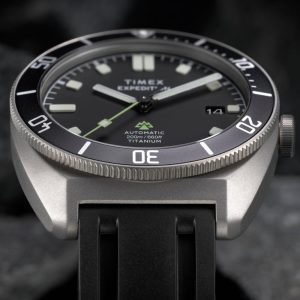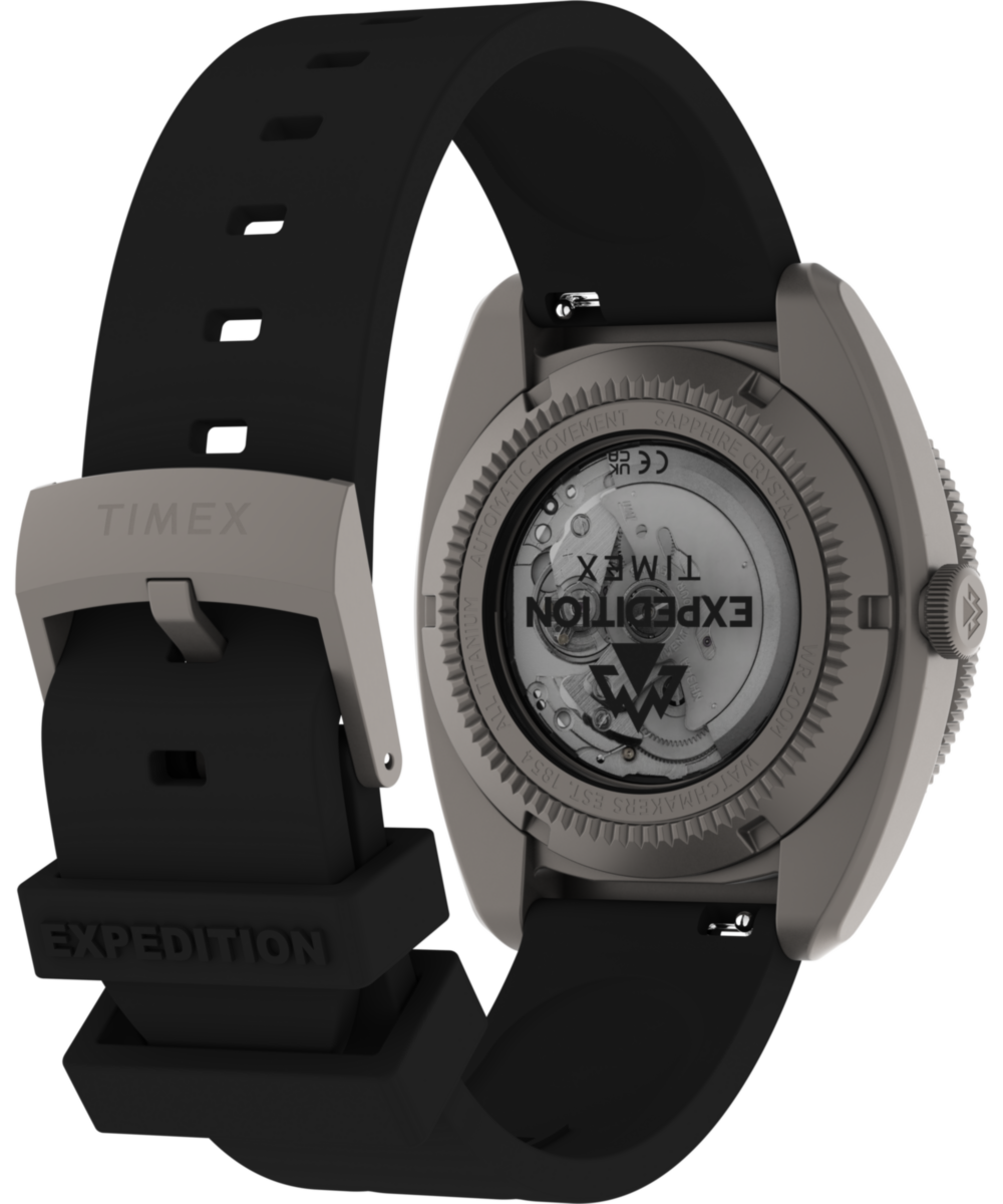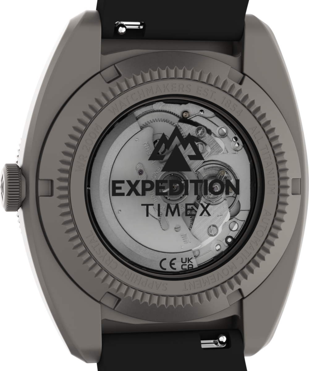 The Expedition Pioneer Titanium Automatic is ready to go the distance with a new 41mm barrel-shaped case rendered in titanium that’s incredibly durable yet lightweight on the wrist. Its unidirectional ratcheting bezel includes an elapsed time scale, while the case back’s exhibition window reveals the battery-free automatic movement ticking inside. The sand-blasted metal dial presents a date window and Super-Luminova® in-fill on the hands and markers for better visibility at night, and it’s protected by an anti-reflective sapphire crystal for a clear view of the dial in bright conditions. Built for the unpredictability of the outdoors, it offers 200m of water resistance and the HNBR rubber strap features quick-release spring bars that allow for easy customization to suit your journey.