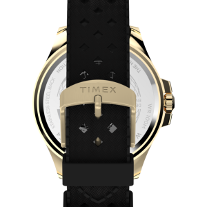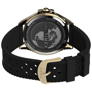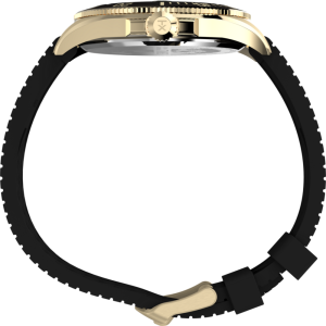 This diver-inspired timepiece is both polished and rugged, built with a sturdy 44mm brushed and polished case equipped with a unidirectional rotating top ring. It stands out on the wrist with a green sunray dial and a black textured synthetic rubber strap that’s perforated for enhanced breathability in and out of the water. Powering it is a reliable quartz movement, and we’ve equipped it with 100m of water resistance, a sturdy crown protector, a magnified date window, and luminant hands and hour markers for better visibility in lowlight conditions.Â