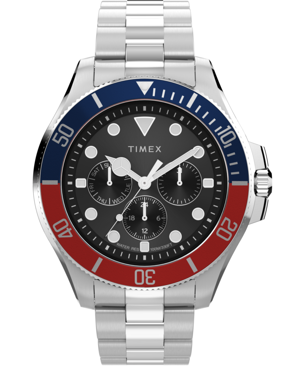 This update to our Harborside Coast features a fully stainless-steel build and a new multi-function movement. The black sunray dial is enriched with sub-dials that track the day of the week, the date, and the time in a 24-hour format. A unidirectional bezel with elapsed time scale brings true diver-inspired functionality, while luminant hands and markers ensure readability long after sundown. Rugged yet refined, the Harborside Coast is built for everyday versatility with the kind of specs and style you’d expect in a modern sport watch.