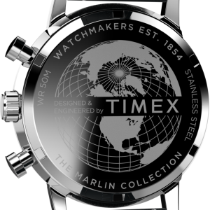 Our Marlin Chronograph Tachymeter boasts the distinction of being the first chronograph in our Marlin line, as well as the first Marlin powered by a quartz movement. This beautifully detailed rendition features a tachymeter index along its outer minute track to measure speed, a unique date window placement, and a natural leather strap ethically sourced from the Leather Working Group (LWG). Though its build breaks new ground in our watchmaking heritage, this timepiece retains the classic Marlin features with a sturdy stainless-steel case, domed acrylic crystal lens, and retro-style square markers at 3, 9, and 12 o’clock.