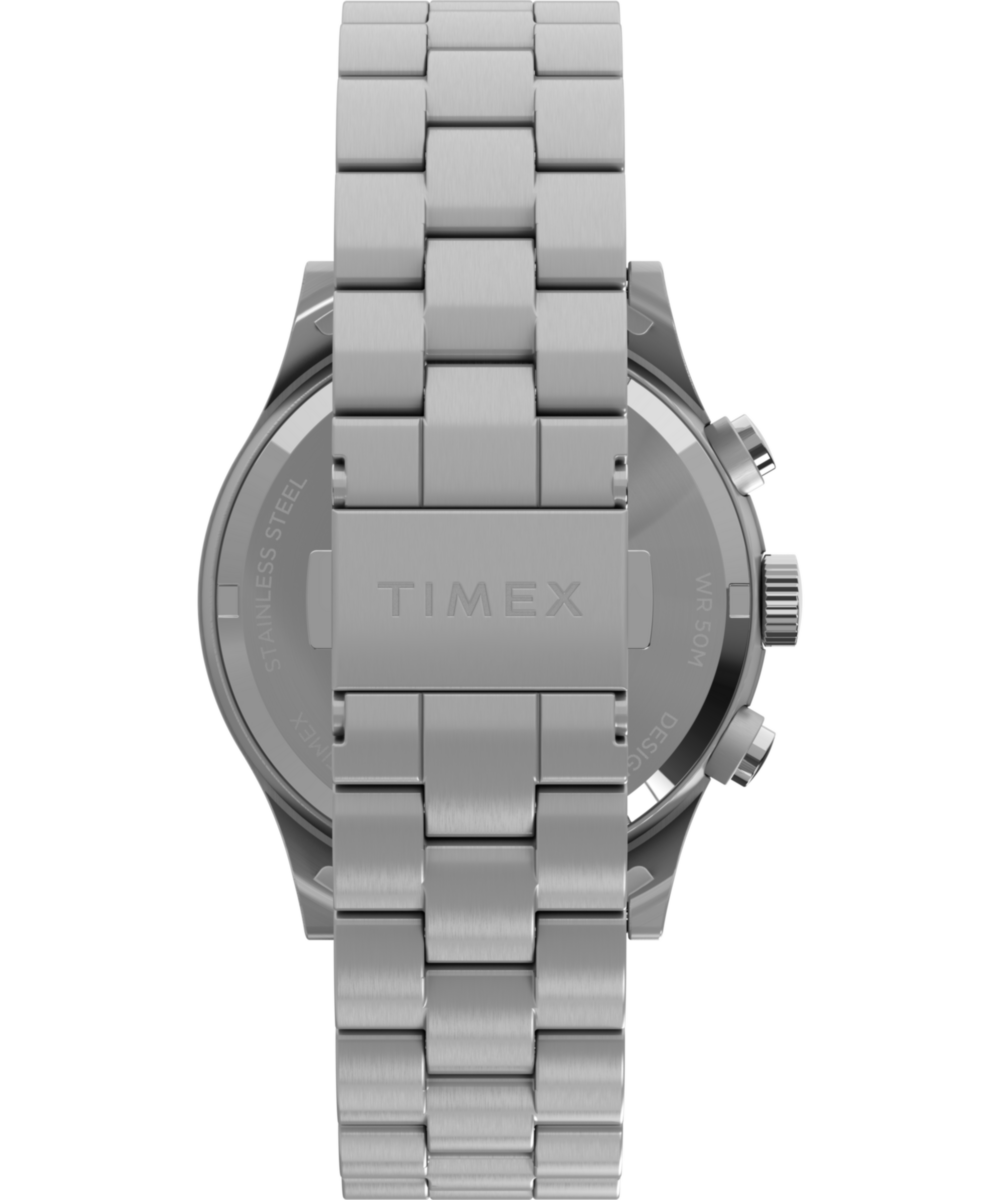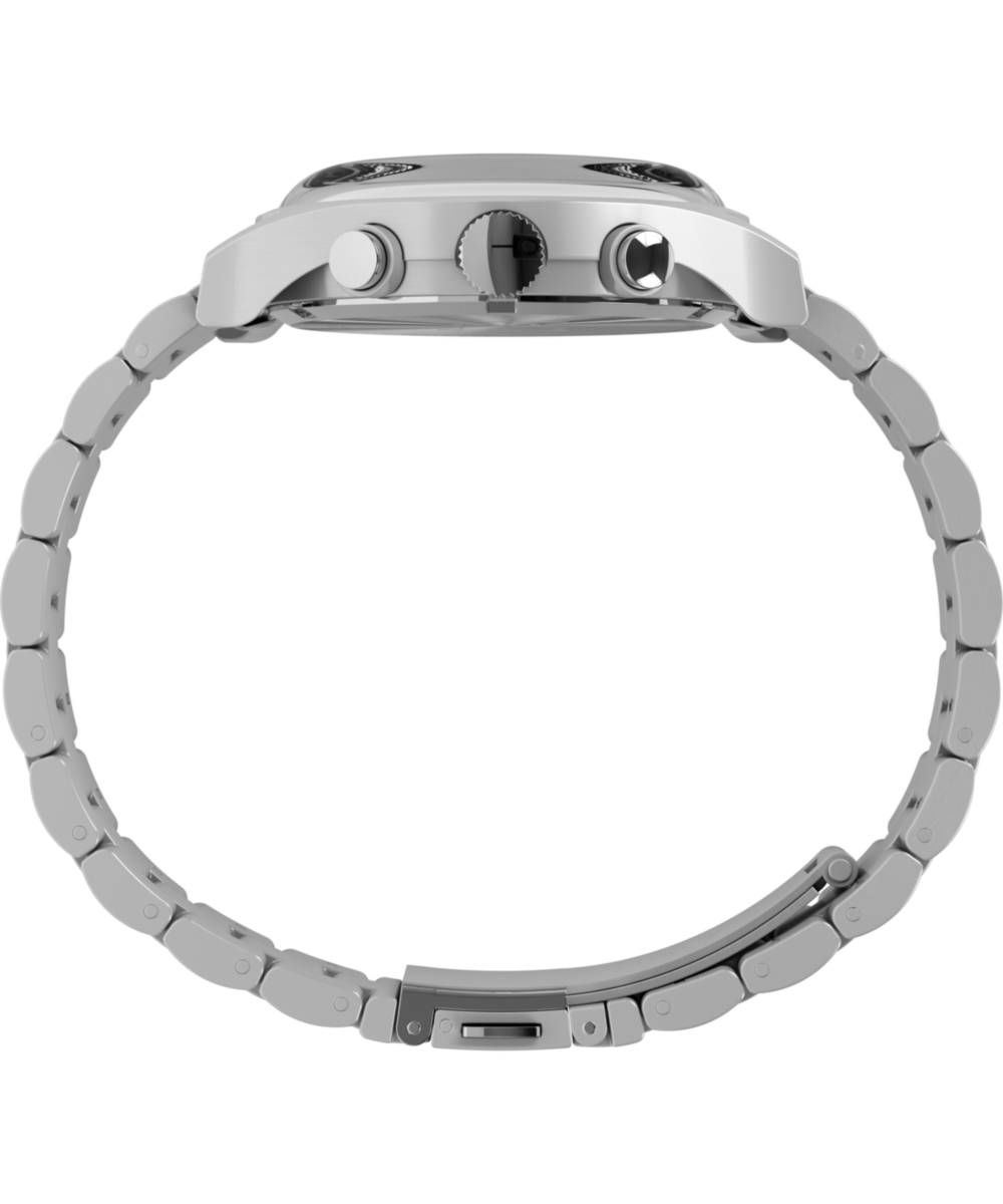A chronograph movement provides the added functionality of a stopwatch. By using the two pushers, you can start, stop, and reset this function.