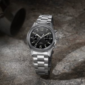 A true field watch classic, this update to our MK1 carries forward the rugged spirit of military-issued timepieces with modern updates for everyday wear. At its core is a reliable quartz chronograph movement for tracking elapsed time with ease. The 40mm case is crafted from stainless steel, pairing handsomely with a coordinating stainless-steel bracelet. A black dial with Arabic numerals delivers clarity at a glance, while luminant hands provide visibility in low light. Purposeful, functional, and timelessly designed, the MK1 Chronograph is a field-tested essential reimagined for the modern wrist.