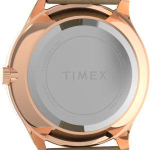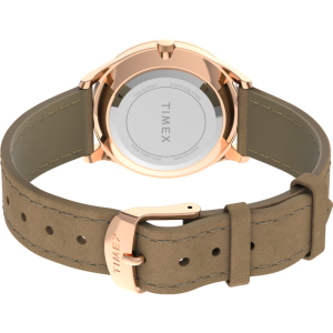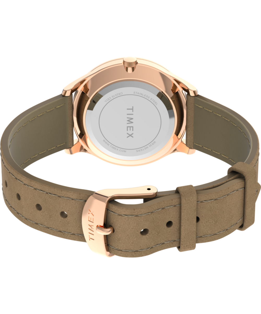 We took a modern approach to our classic 1977 watch with updates to its rose gold-tone case, easy-to-read white dial and beige natural leather strap—bringing together simplicity and effortless style.