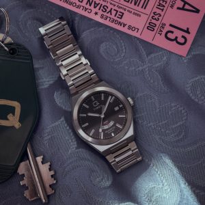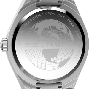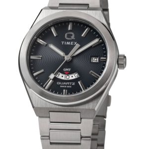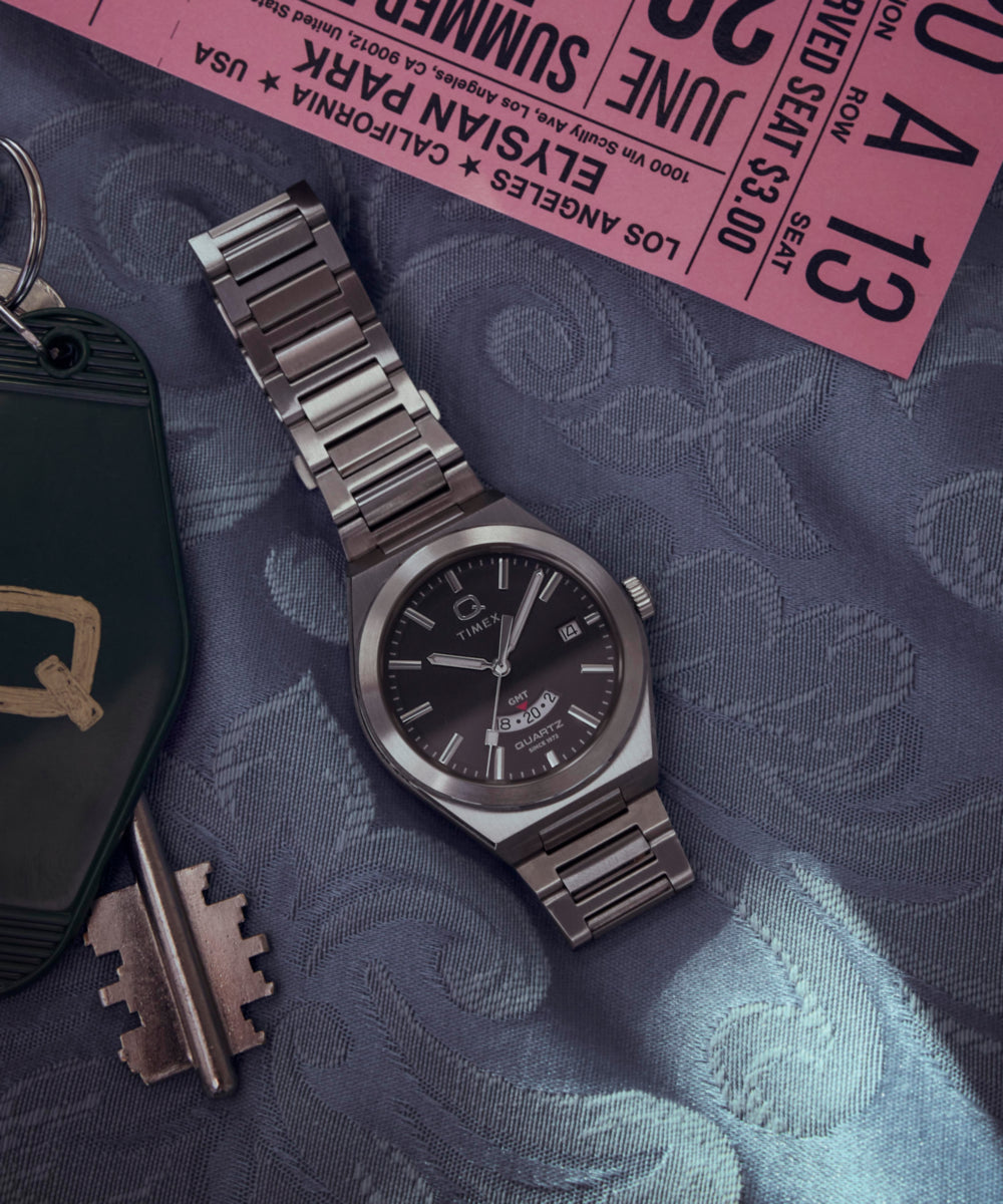 Channeling the bold designs and decadent glamour that filled the scene in ‘70s West Hollywood, the Q Timex® Continental GMT brings refinement to our beloved Q Timex collection with a new streamlined 39mm brushed stainless-steel case with polished edges and a sleek GMT window at 6 o’clock. The simple black or silver-tone dial features a radial texture and a clean presentation that’s effortlessly cool, highlighted by faceted hour markers, luminant hands for enhanced visibility in the dark, and a glanceable date window beside the 3rd hour marker. Completing the truly ‘70s style look is a tapered and integrated brushed stainless-steel bracelet.