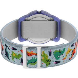 Made just for kids, our blue dinosaur-themed watch features an easy-to-read dial, minute markers and adjustable elastic band. Plus, all of our kids’ watches are covered by our 100% worry-free replacement plan so you don’t worry about lost or broken watches. See timex.com/kids-warranty.html for details.
