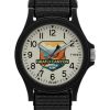 The Timex x National Parks collection is a tribute to America’s wild spaces. This watch captures the vibrant energy and unique landscape of Yellowstone National Park with a nostalgic dial illustration reminiscent of a vintage postcard. It’s built to equip you for adventure with a lightweight black resin case that allows you to focus on your journey without the distraction of heavy gear, as well as a FastWrap® hook and loop fabric strap for easy on-and-off. Durability in the outdoors is key, reinforced by a sturdy crown protector, 50 meters of water resistance, and a tough acrylic crystal. On the cream dial, full Arabic markers provide easy time-telling at a glance, while luminous hands ensure visibility in low-light conditions should you find yourself exploring after dark. Finishing its playful design is a black arrow-shaped second hand that complements the graphic dial artwork.